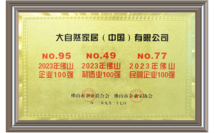 重磅!大自然家居入選“2023年佛山企業(yè)100強(qiáng)”等多個百強(qiáng)名單!