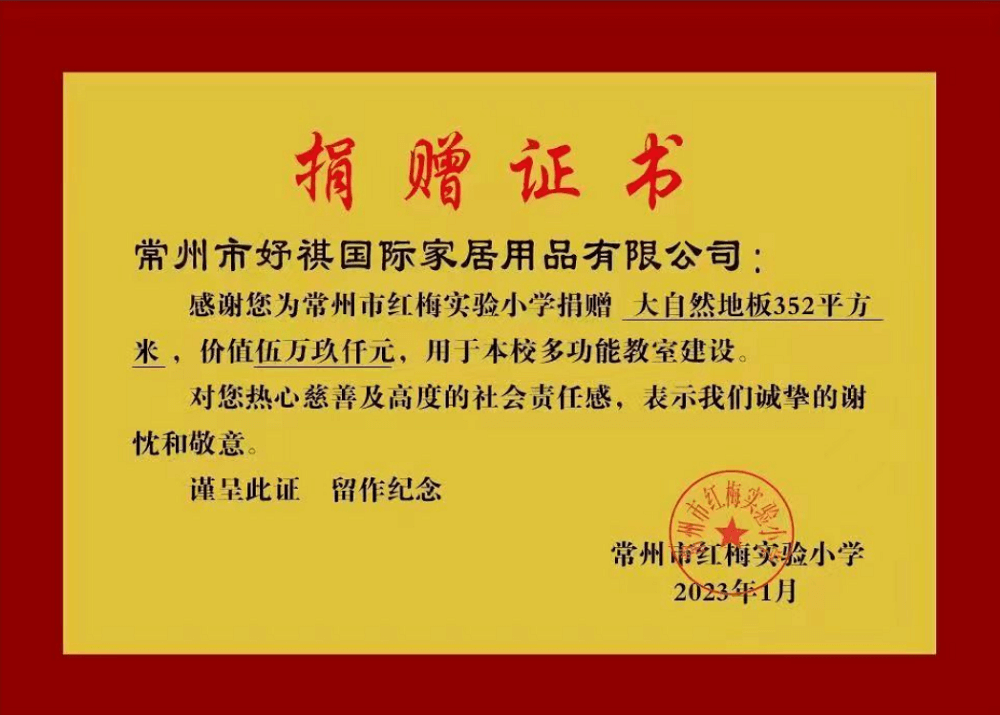 少年兒童是祖國的未來,民族的希望;守護學生健康安全,是國家、學校乃至社會的共同牽掛與責任。在2023年開春之際,江蘇常州大自然地板為當?shù)伉P凰新城實驗小學、紅梅小學進行了愛心捐贈,以健康地板守護兒童健康學習,助力校園建設(shè)。