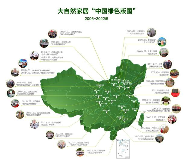 除此之外,為提高社會公眾造林綠化、改善生態(tài)環(huán)境的意識,自2006年起積極推進“中國綠色版圖工程”,大自然家居相繼開展了16年公益植樹活動。據(jù)相關(guān)數(shù)據(jù)統(tǒng)計,截至 2022年 5 月,在國內(nèi)外 19 個地區(qū)種植了 27 片生態(tài)林,公益植樹超 100萬棵。與此同時,大自然家居攜手澳門紅十字會開展十年公益計劃、“中國綠色搖籃工程”公益助學等活動,以切身行動投身公益,為用戶打造健康、環(huán)保的生活方式。