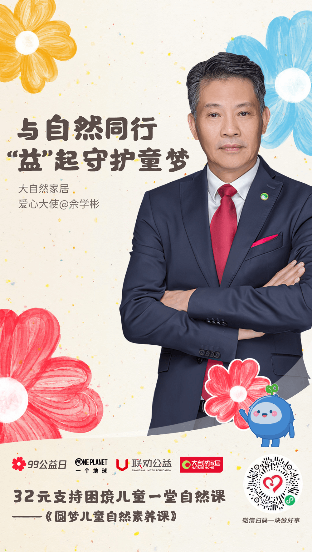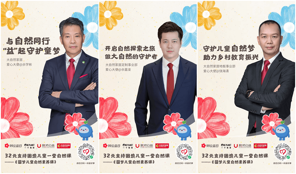 一分善意,萬分有力。近日,由騰訊公益率先發(fā)起的99公益日正在火熱進(jìn)行中。作為今年99公益日參與企業(yè)之一,大自然家居積極參與99公益日行動,由大自然家居集團(tuán)董事長佘學(xué)彬親自擔(dān)任愛心大使,同時廣泛發(fā)動事業(yè)部團(tuán)隊(duì)、社會各界人士進(jìn)行籌集善款,呼吁共同關(guān)注、守護(hù)困境兒童的健康學(xué)習(xí)成長。