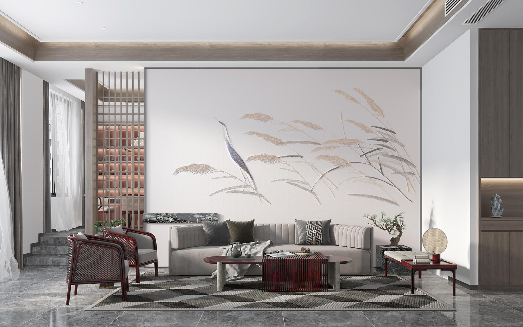 新中式精致、華麗、有章法,是一種獨特的東方美學,保留了傳統(tǒng)中式的同時簡化了繁復的裝飾,均衡、端正,又崇尚自然,是對品質生活的理解和尊重