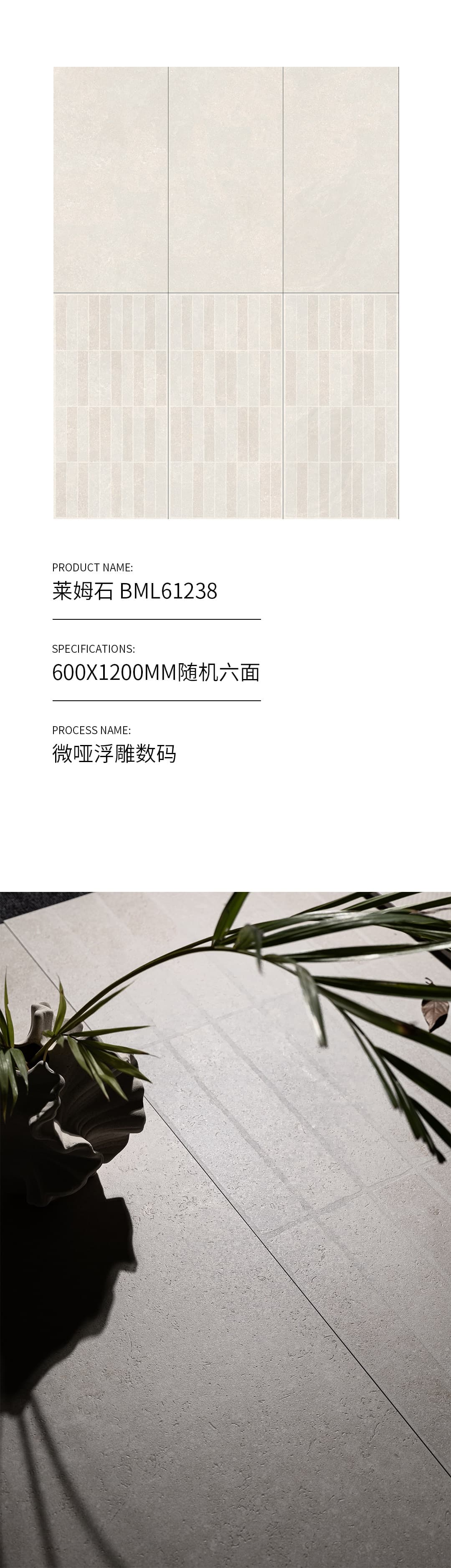 | 產(chǎn)品特性 | 表面柔和,防污效果強(qiáng),防滑R10指標(biāo)高,抗折強(qiáng)度好 |